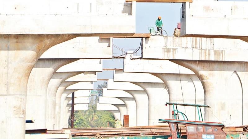 Thi công cầu Thống Nhất thuộc dự án đường trục trung tâm thành phố Biên Hòa.