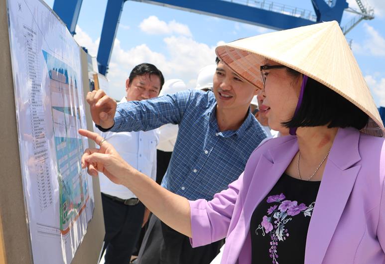 Phó Chủ tịch UBND tỉnh Nguyễn Thị Hoàng kiểm tra tiến độ xây dựng cảng Phước An.