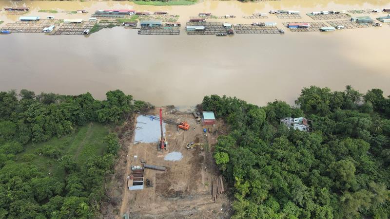 Nhà thầu đã tập kết đầy đủ các máy móc, thiết bị để chuẩn bị thi công khoan nhồi, xây dựng các trụ cầu đầu tiên của cầu Thống Nhất