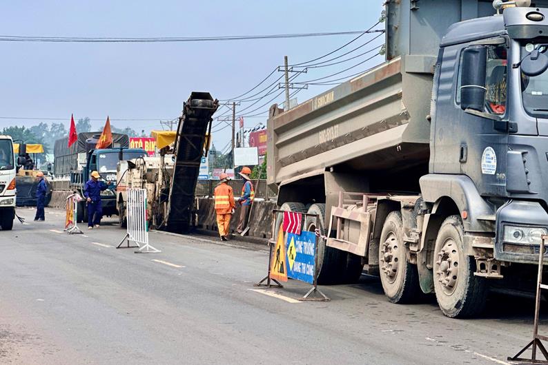Sửa chữa mặt đường trên Quốc lộ 1 đoạn qua huyện Trảng Bom