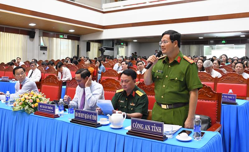 Phó Giám đốc Công an tỉnh Trần Anh Sơn trả lời chất vấn của đại biểu