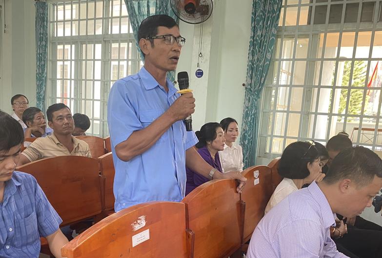 Cử tri H.Định Quán phát biểu ý kiến tại buổi tiếp xúc cử tri.