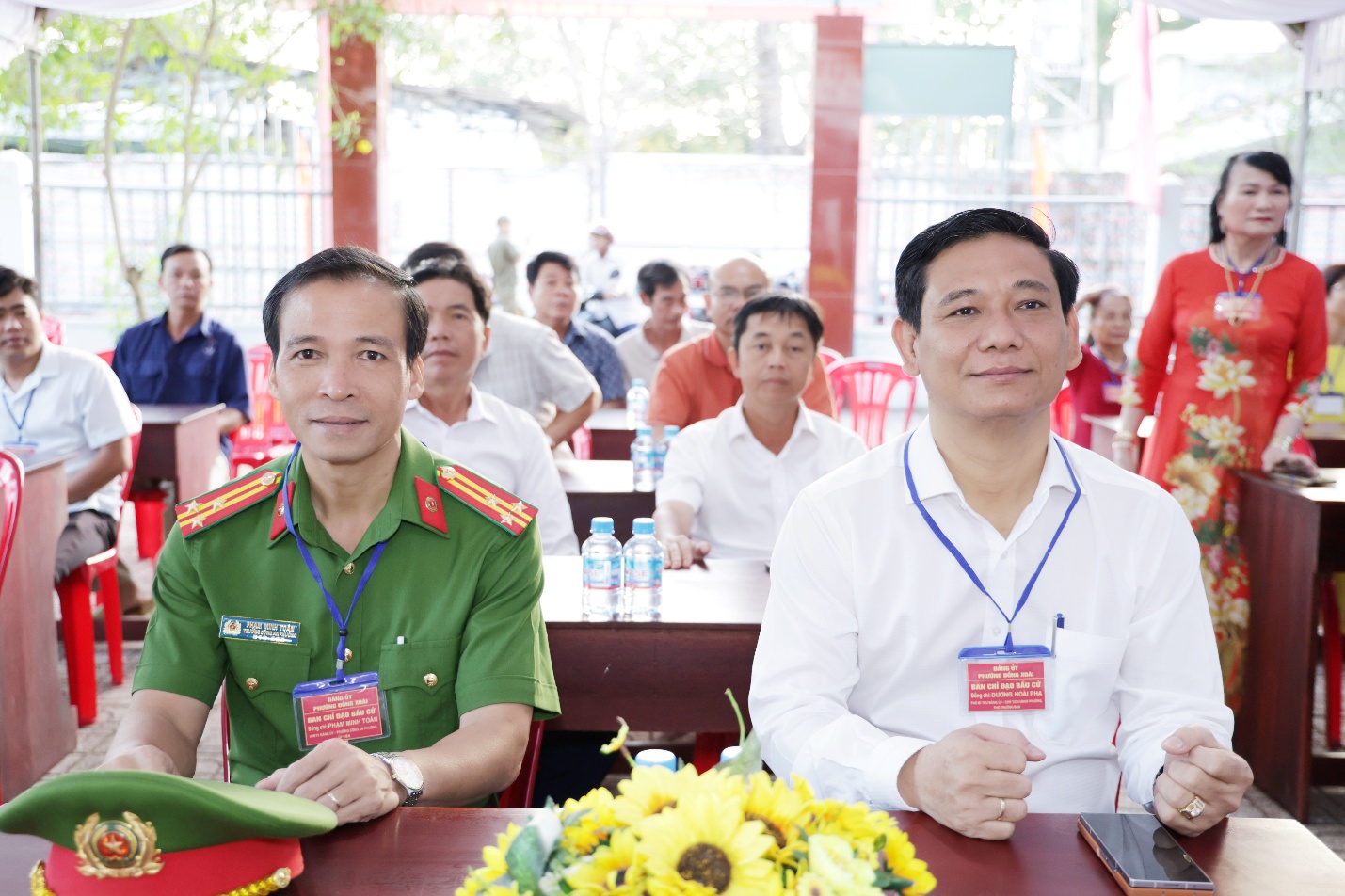 Các đồng chí lãnh đạo Đảng ủy phường tham gia khai mạc tại các điểm bầu cử.