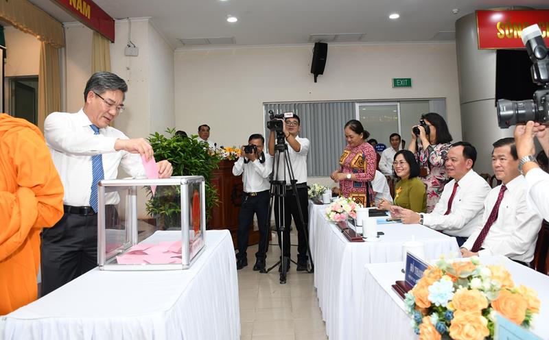 Đại biểu HĐND bỏ phiếu bầu chức Chủ tịch UBND tỉnh khóa X, nhiệm kỳ 2021-2026.