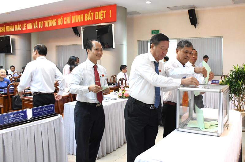 Các đại biểu bỏ phiếu bầu bổ sung chức danh Ủy viên UBND tỉnh nhiệm kỳ 2021-2026.