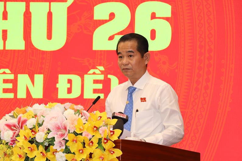 Chủ tịch HĐND tỉnh Thái Bảo phát biểu khai mạc kỳ họp lần thứ 26 HĐND tỉnh khóa X, nhiệm kỳ 2021-2026