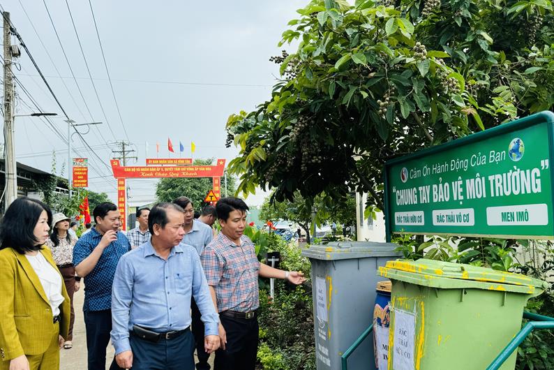 Đoàn giám sát của HĐND tỉnh tham quan mô hình phân loại rác tại xã Vĩnh Tân, huyện Vĩnh Cửu. Ảnh: B.Nguyên