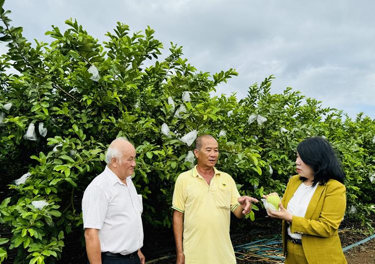 Phó Chủ tịch HĐND tỉnh Hoàng Thị Bích Hằng giám sát mô hình sản xuất sạch tại xã Vĩnh Tân, huyện Vĩnh Cửu. Ảnh: B.Nguyên
