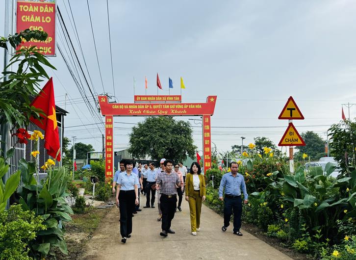 Đoàn giám sát của HĐND tỉnh về tình hình xây dựng nông thôn mới tham quan tuyến đường kiểu mẫu tại xã Vĩnh Tân, huyện Vĩnh Cửu. Ảnh: B. Nguyên