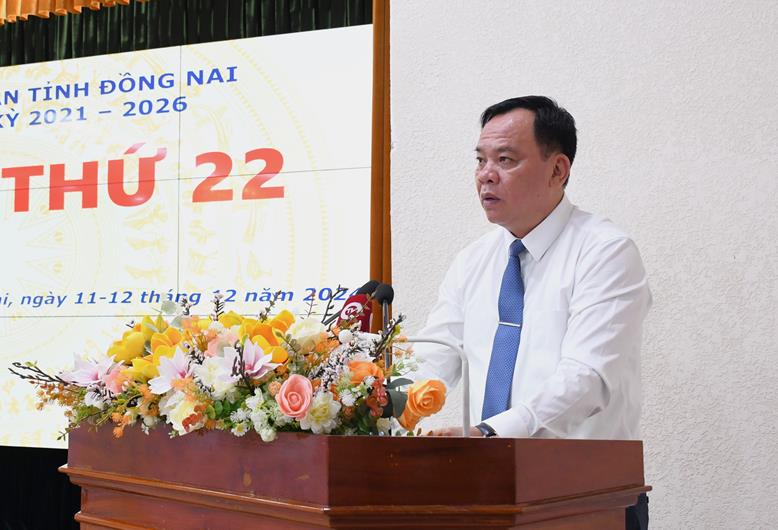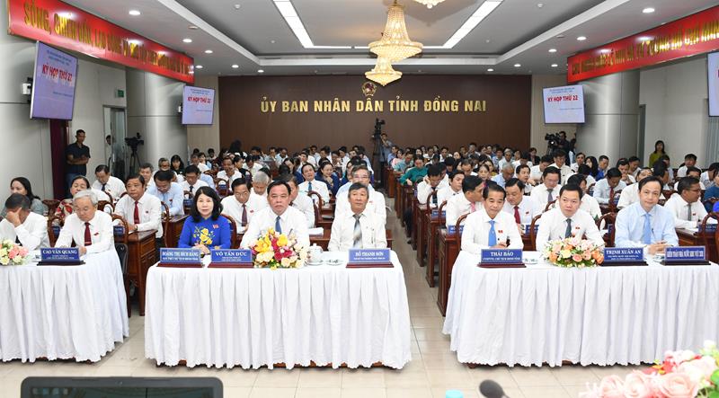 Phát biểu khai mạc kỳ họp, Chủ tịch HĐND tỉnh Thái Bảo cho biết, tại kỳ họp này, HĐND tỉnh sẽ xem xét, quyết quyết định nhiều nội dung quan trọng. Đó là sẽ xem xét báo cáo tình hình thực hiện nghị quyết của HĐND tỉnh về kế hoạch phát triển kinh tế - xã hội của tỉnh năm 2024. Trong năm 2024, tỉnh Đồng Nai phải đối mặt với nhiều khó khăn, thách thức. Tỉnh ủy, HĐND, UBND, Ủy ban MTTQ Việt Nam tỉnh đã tập trung lãnh đạo, chỉ đạo, điều hành; triển khai thực hiện đồng bộ, quyết liệt các nhiệm vụ; tập trung tháo gỡ những vướng mắc, khó khăn. \Kết quả có 32/32 chỉ tiêu đạt và vượt kế hoạch đề ra. Từ đầu nhiệm kỳ đến nay, năm 2024 là năm đầu tiên tỉnh Đồng Nai hoàn thành tất cả 100% chỉ tiêu nghị quyết HĐND tỉnh đề ra, trong đó có 13 chỉ tiêu vượt. Cùng với đó, cả hệ thống chính trị đã tập trung dồn lực triển khai thực hiện và hoàn thành nhiều nhiệm vụ có tính chất quan trọng, chiến lược như: Quy hoạch tỉnh Đồng Nai thời kỳ 2021-2030, tầm nhìn đến năm 2050; hoàn thành việc sắp xếp đơn vị hành chính cấp xã của tỉnh Đồng Nai giai đoạn 2023-2025; xây dựng hệ thống văn bản để cụ thể hóa thi hành Luật Đất đai, Luật Nhà ở.