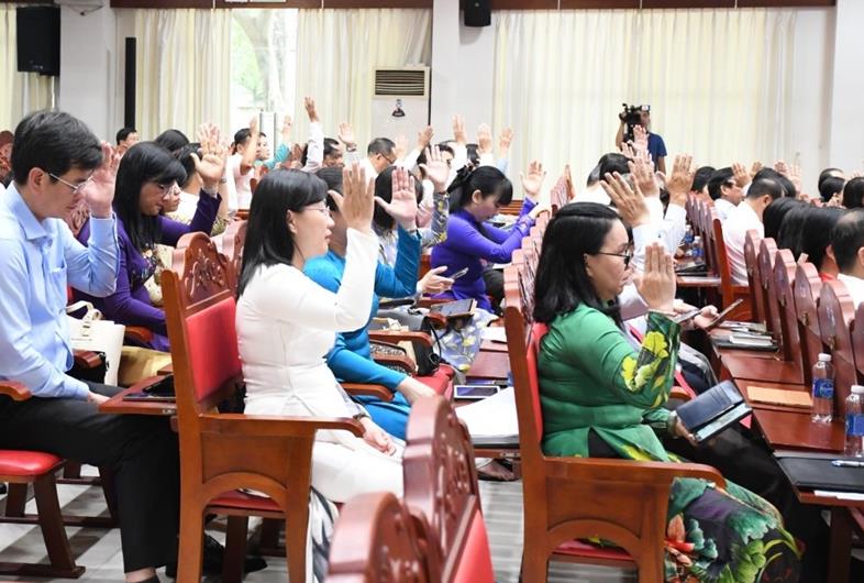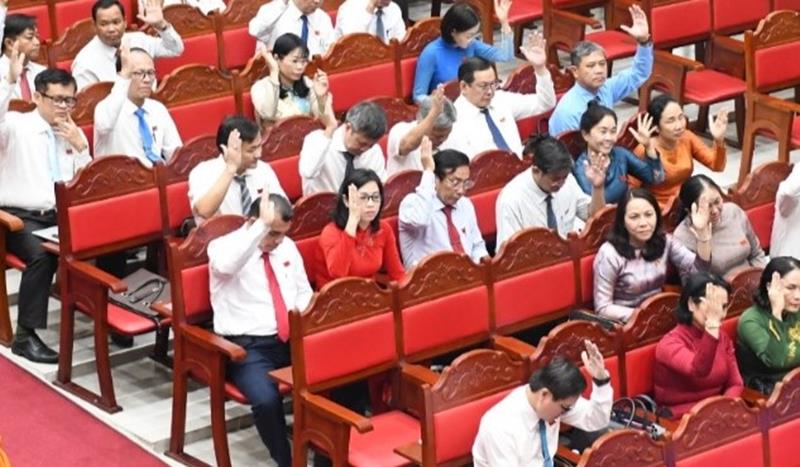 Các đại biểu HĐND biểu quyết thông qua Nghị quyết tại kỳ họp