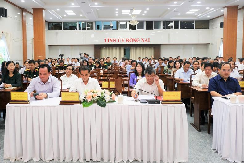 Hội nghị được thực hiện theo hình thức trực tiếp, kết hợp trực tuyến từ Hội trường Tỉnh ủy kết nối đến 14 điểm cầu trong tỉnh.