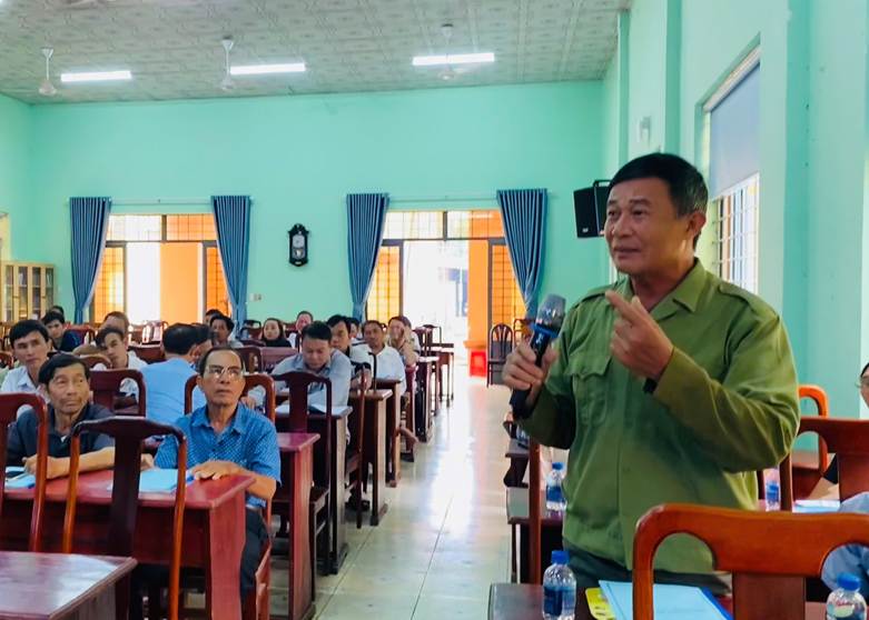 Người dân phát biểu, trao đổi ý kiến tại hội nghị tuyên truyền pháp luật về bầu cử đại biểu Quốc hội và đại biểu Hội đồng nhân dân các cấp nhiệm kỳ 2026 – 2031.