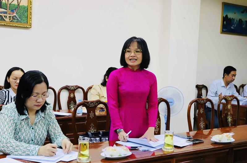 Giám đốc Sở Tài chính Trương Thị Hương Bình báo cáo tại buổi thẩm tra của HĐND tỉnh.