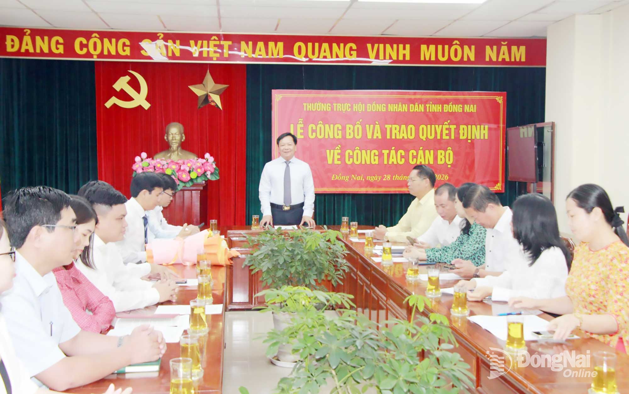 Tại buổi lễ, đại diện Văn phòng Đoàn Đại biểu Quốc hội (ĐBQH) và HĐND tỉnh đã công bố quyết định của Thường trực HĐND tỉnh tiếp nhận và bổ nhiệm ông Đỗ Mạnh Cường, Phó Trưởng ban Tiếp công dân thuộc Văn phòng UBND tỉnh giữ chức vụ Phó Chánh Văn phòng Đoàn ĐBQH và HĐND tỉnh Đồng Nai. Thời gian bổ nhiệm 5 năm, kể từ ngày 28-4-2026.