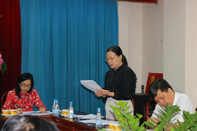 Phó ban Văn hóa - Xã hội HĐND tỉnh Đỗ Thị Hòa Bình phát biểu tại cuộc họp