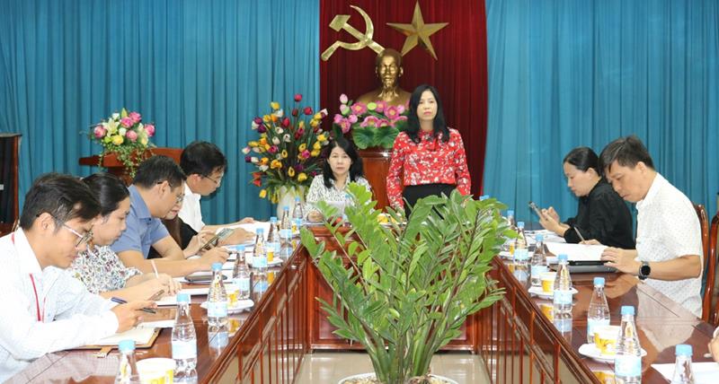 Trưởng Ban Văn hóa - Xã hội HĐND tỉnh Huỳnh Ngọc Kim Mai phát biểu tại cuộc họp.