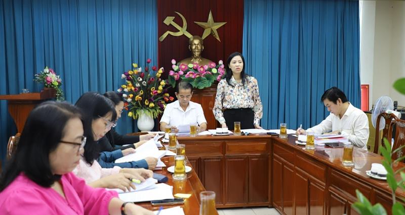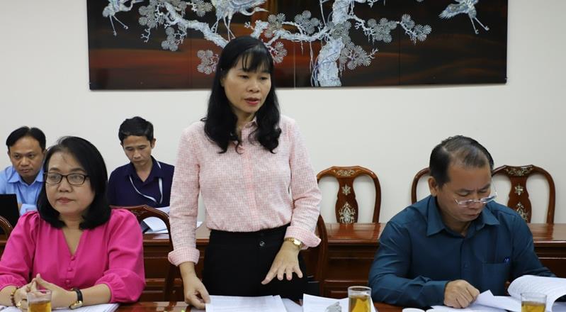 Trưởng Ban Văn hóa - Xã hội HĐND tỉnh Huỳnh Ngọc Kim Mai chủ trì buổi thẩm tra
