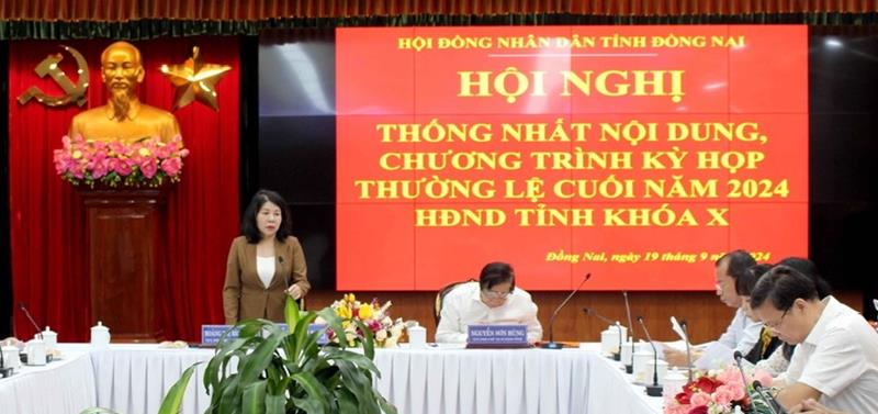 (CTT-Đồng Nai) - Sáng 19-9, Phó Chủ tịch HĐND tỉnh Hoàng Thị Bích Hằng và Phó Chủ tịch UBND tỉnh Nguyễn Sơn Hùng chủ trì hội nghị thống nhất nội dung chương trình Kỳ họp thường lệ cuối năm 2024 HĐND tỉnh khóa X.