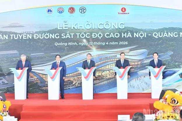 Sáng 12-4, tại phường Tuần Châu, tỉnh Quảng Ninh, Thủ tướng Chính phủ Lê Minh Hưng dự Lễ khởi công Tuyến đường sắt tốc độ cao Hà Nội-Quảng Ninh do Ủy ban nhân dân tỉnh Quảng Ninh, Tập đoàn Vingroup phối hợp Ủy ban nhân dân các tỉnh, thành phố Hà Nội, Hải Phòng, Bắc Ninh tổ chức.