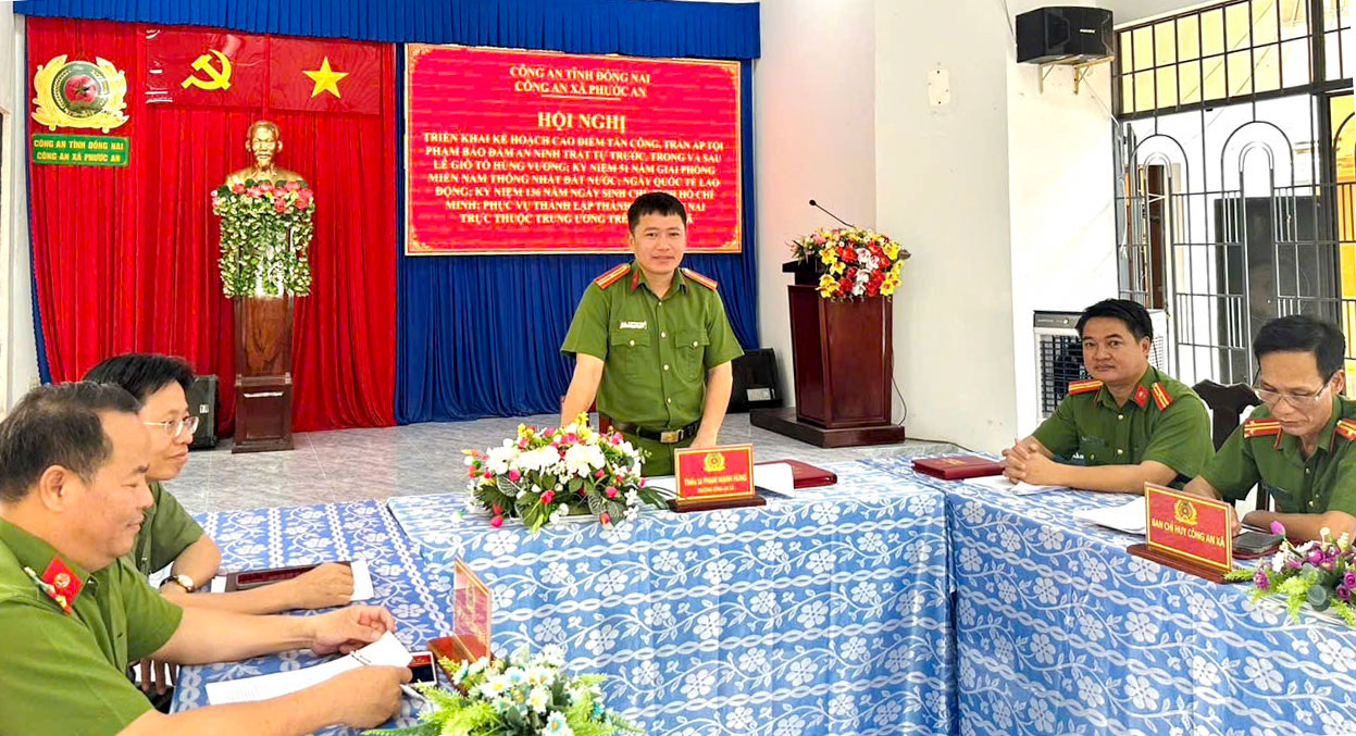 <p style="text-align:justify;">Tham dự buổi lễ ra quân có các đồng chí lãnh đạo Đảng ủy, Ban Chỉ huy Công an xã, toàn thể cán bộ, chiến sĩ cùng lực lượng tham gia bảo vệ ANTT ở cơ sở. Đồng chí Thiếu tá Phạm Mạnh Hùng, Bí thư Đảng ủy, Trưởng Công an xã chủ trì buỗi lễ.</p><figure class="image"><img style="aspect-ratio:1247/677;" src="https://dongnai.gov.vn/uploads/binhphuoc/news/2026_04/e1_1.jpg" width="1247" height="677" /><figcaption>Trưởng Công an xã Phước An Phạm Mạnh Hùng phát biểu tại buổi Lễ</figcaption></figure><p style="text-align:justify;">Phát biểu tại buổi lễ, Thiếu tá Phạm Mạnh Hùng, Bí thư Đảng ủy, Trưởng Công an xã&nbsp;nhấn mạnh: đợt cao điểm lần này có ý nghĩa đặc biệt quan trọng nhằm giữ vững ổn định an ninh chính trị, trật tự an toàn xã hội, tạo môi trường an toàn, lành mạnh để Nhân dân vui lễ, tham gia các hoạt động kỷ niệm. Đồng thời, góp phần phục vụ hiệu quả nhiệm vụ phát triển kinh tế - xã hội và lộ trình xây dựng thành phố Đồng Nai trực thuộc Trung ương. Đồng thời, yêu cầu các Tổ nghiệp vụ triển khai triển khai đồng bộ các biện pháp nghiệp vụ, chủ động nắm chắc tình hình từ sớm, từ xa, ngay tại cơ sở; kịp thời phát hiện, đấu tranh, ngăn chặn và xử lý hiệu quả các loại tội phạm và hành vi vi phạm pháp luật, hoàn thành xuất sắc các chỉ tiêu, nhiệm vụ được giao.</p><p style="text-align:justify;">Theo kế hoạch, trong thời gian cao điểm, lực lượng Công an xã sẽ triển khai đồng bộ các biện pháp nghiệp vụ; tăng cường nắm tình hình từ sớm, từ xa; chủ động phòng ngừa, phát hiện, đấu tranh quyết liệt với các loại tội phạm, nhất là tội phạm phạm hình sự, ma túy, cờ bạc, tín dụng đen; tăng cường quản lý cư trú, ngành nghề kinh doanh có điều kiện về ANTT; đẩy mạnh tuần tra, kiểm soát, bảo đảm trật tự an toàn giao thông; đồng thời phát huy vai trò của lực lượng ANTT cơ sở trong công tác nắm tình hình, vận động Nhân dân tham gia phong trào toàn dân bảo vệ an ninh Tổ quốc.</p><p style="text-align:justify;">Bên cạnh đó, tiếp tục được chú trọng tuyên truyền, vận động Nhân dân tham gia phong trào Toàn dân bảo vệ an ninh Tổ quốc, góp phần nâng cao ý thức cảnh giác, chủ động phòng ngừa tội phạm trong cộng đồng dân cư.</p><figure class="image"><img style="aspect-ratio:1078/640;" src="https://dongnai.gov.vn/uploads/binhphuoc/news/2026_04/e2_1.jpg" width="1078" height="640" /><figcaption>Quang cảnh buổi Lễ ra quân</figcaption></figure><p style="text-align:justify;">Lễ ra quân là hoạt động thiết thực, thể hiện tinh thần chủ động, quyết liệt của lực lượng Công an trong công tác đấu tranh phòng, chống tội phạm, góp phần giữ vững cuộc sống bình yên, hạnh phúc của Nhân dân, qua đó tiếp tục củng cố niềm tin của Nhân dân đối với lực lượng Công an cơ sở trong tình hình mới.</p>