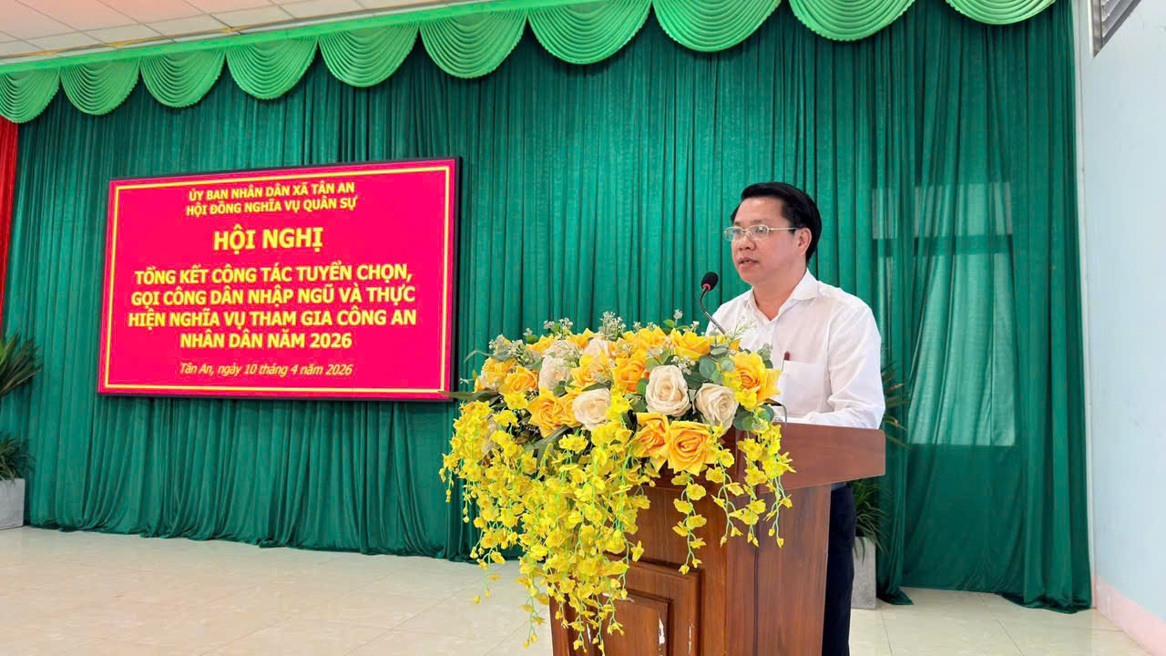 (CTT-Đồng Nai) - Chiều ngày 10-4, UBND xã Tân An tổ chức Hội nghị tổng kết công tác tuyển chọn và gọi công dân nhập ngũ năm 2026, đồng thời triển khai phương hướng, nhiệm vụ năm 2027.