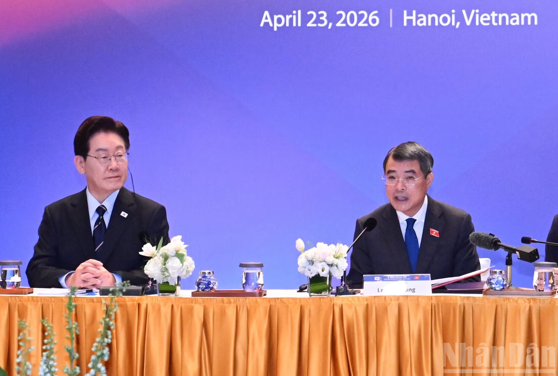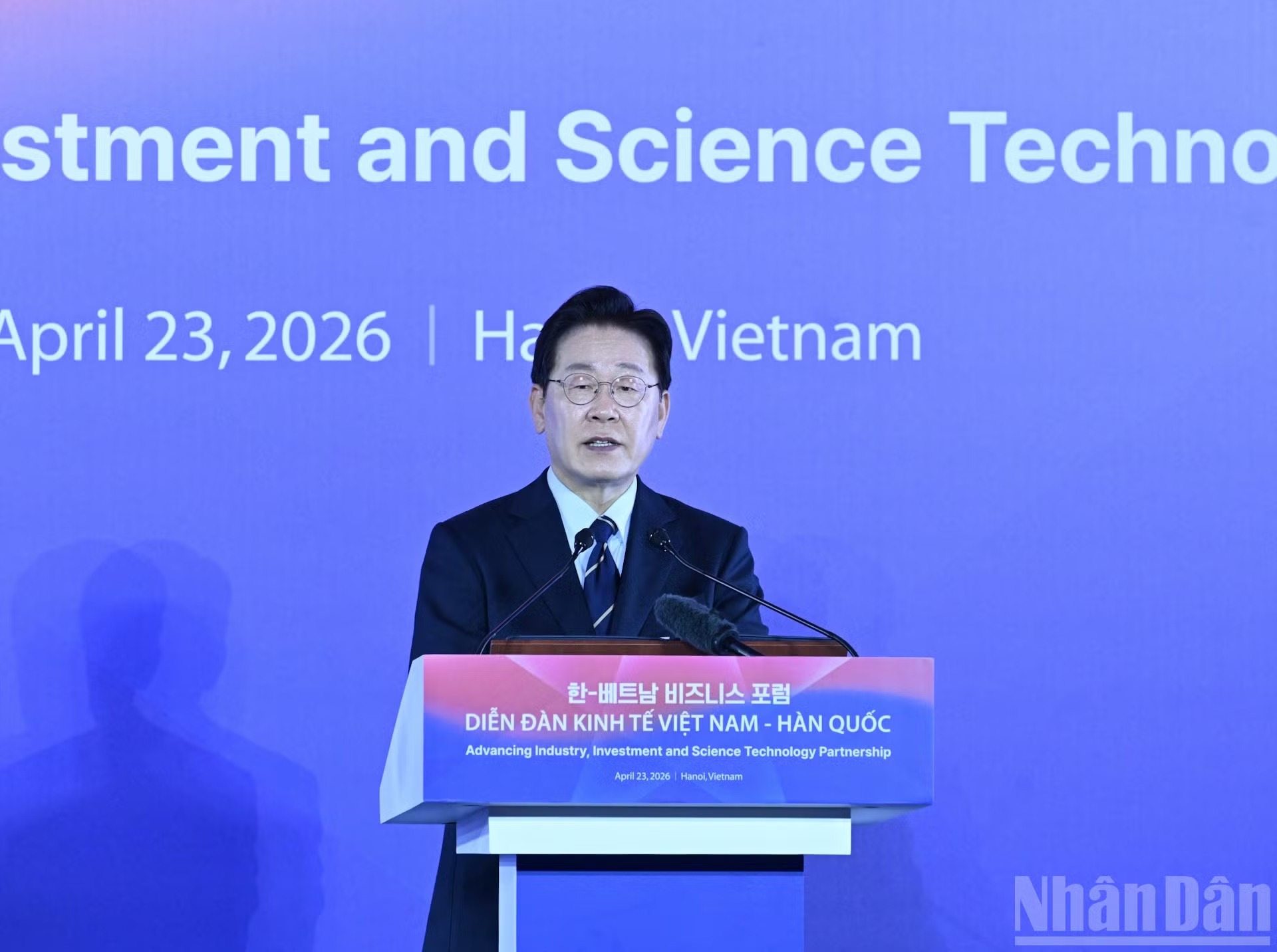 Chiều 23-4, tại Hà Nội, Thủ tướng Chính phủ Lê Minh Hưng và Tổng thống Hàn Quốc Lee Jae Myung đã dự Diễn đàn kinh tế Việt Nam-Hàn Quốc với chủ đề “Nâng cao quan hệ đối tác công nghiệp, đầu tư và khoa học công nghệ”.