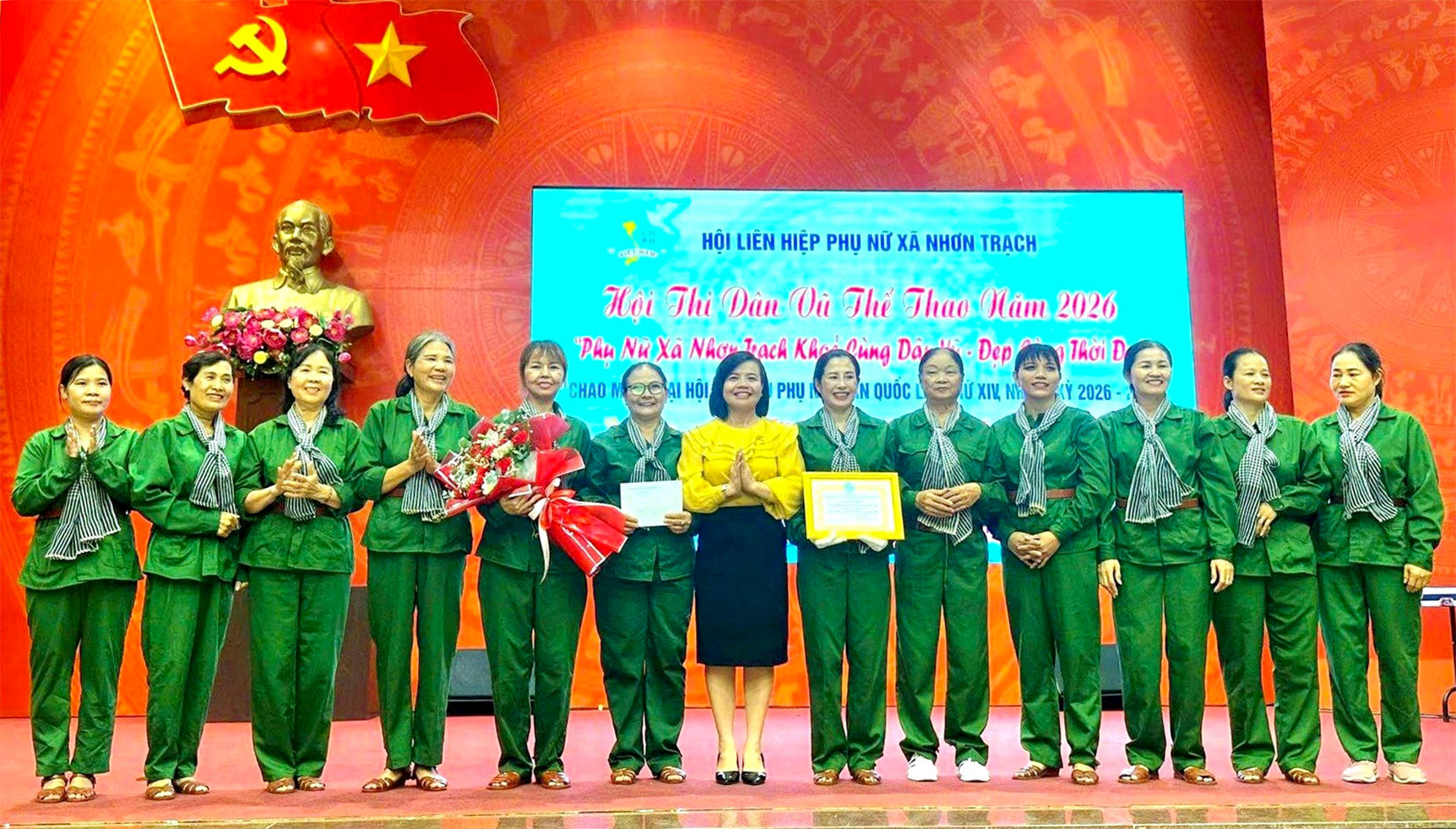 <p style="text-align:justify;">Đây là hoạt động trọng tâm nhằm tạo không khí thi đua sôi nổi, thiết thực chào mừng kỷ niệm 51 năm Ngày Giải phóng miền Nam, thống nhất đất nước (30-4-1975 – 30-4-2026), 140 năm Ngày Quốc tế Lao động (1-5-1886 – 1-5-2026) và hướng tới Đại hội đại biểu Phụ nữ toàn quốc lần thứ XIV, nhiệm kỳ 2026 – 2031.</p><p style="text-align:justify;">Hội thi thu hút sự tham gia của 7 đội đến từ các Chi hội phụ nữ trên địa bàn xã. Các tiết mục được đầu tư công phu, dàn dựng bài bản, biểu diễn trên nền nhạc sôi động, nội dung ca ngợi quê hương, đất nước và hình ảnh người phụ nữ Việt Nam thời đại mới. Kết quả, Ban tổ chức đã trao các giải Nhất, Nhì, Ba và Khuyến khích cho những đội thi xuất sắc. Trong đó, tiết mục “Hò Kéo Pháo - Bác Cùng Chúng Cháu Hành Quân” của Câu lạc bộ Hoa Phượng Đỏ – Chi hội phụ nữ ấp Bến Cam đã xuất sắc giành giải Nhất chung cuộc.</p><figure class="image"><img style="aspect-ratio:1724/982;" src="https://dongnai.gov.vn/uploads/binhphuoc/news/2026_04/c_3.jpg" width="1724" height="982" /><figcaption>Bà Hồ Thị Kim Ngân – Chủ tịch Uỷ ban MTTQ Việt Nam xã trao Giải Nhất cho Chi hội phụ nữ ấp Bến Cam</figcaption></figure><p style="text-align:justify;">Hội thi không chỉ là sân chơi bổ ích giúp hội viên phụ nữ rèn luyện sức khỏe, nâng cao đời sống tinh thần mà còn là dịp để tăng cường giao lưu, gắn kết giữa các chi hội. Qua đó, góp phần lan tỏa hình ảnh người phụ nữ Việt Nam thời đại mới tự tin, khỏe mạnh, năng động; thúc đẩy phong trào văn hóa, văn nghệ, thể dục thể thao tại địa phương ngày càng phát triển.</p>