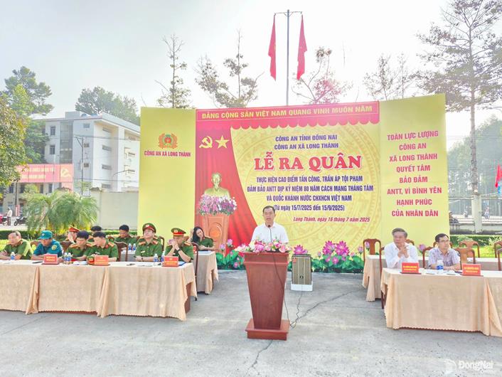 Hưởng ứng cao điểm trên, sáng 16-7, Công an xã Long Thành đã tổ chức lễ ra quân thực hiện cao điểm tấn công, trấn áp các loại tội phạm đảm bảo ANTT dịp kỷ niệm 80 năm Cách mạng Tháng Tám và Quốc khánh 2-9. Ủy viên Ban Thường vụ Tỉnh ủy, Bí thư Đảng ủy, Chủ tịch HĐND xã Long Thành Dương Minh Dũng cùng lãnh đạo xã đã dự buổi lễ.