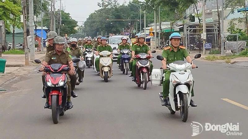 Công an xã Trảng Bom ra quân thực hiện cao điểm. Ảnh: Công an tỉnh