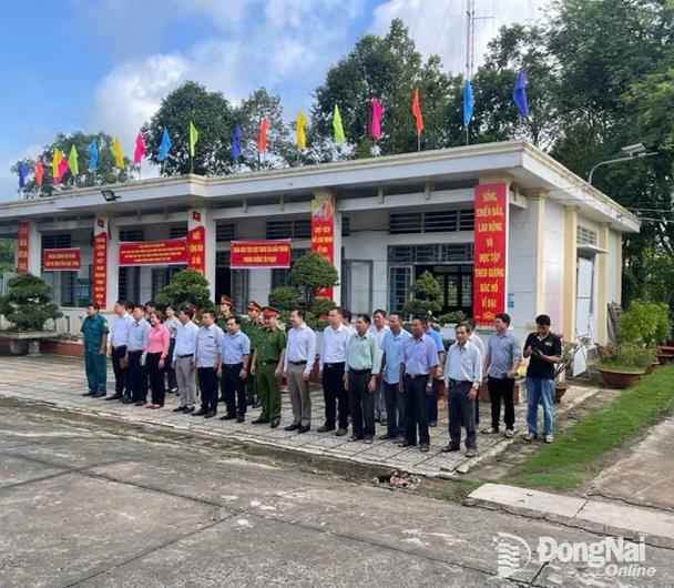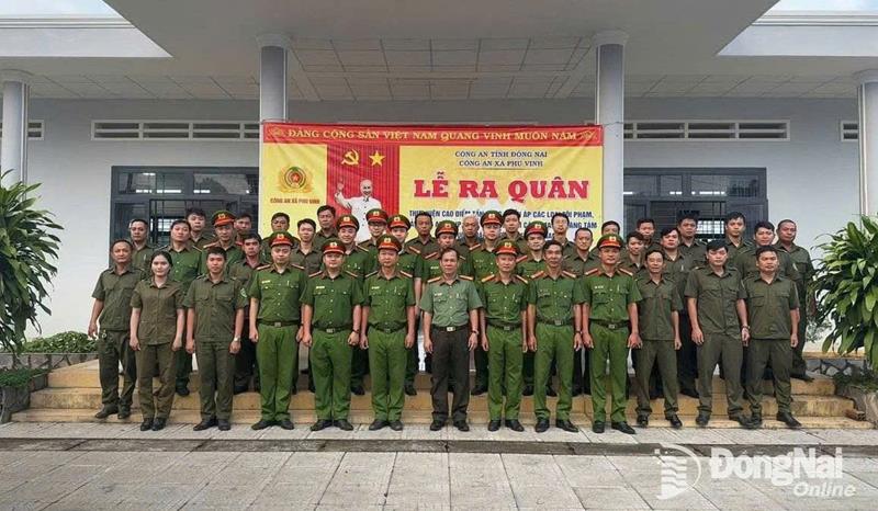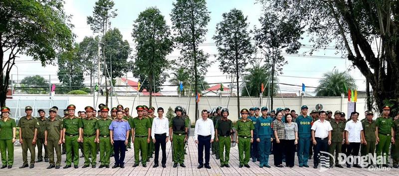 Lãnh đạo xã Định Quán cùng lực lượng công an tại lễ ra quân cao điểm. Ảnh: Công an tỉnh