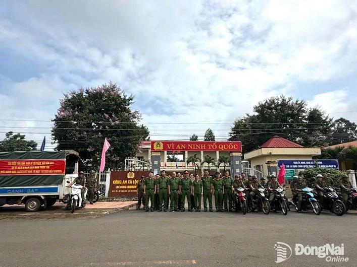 Công an xã Cẩm Mỹ triển khai lực lượng thực hiện đợt cao điểm. Ảnh: Công an tỉnh