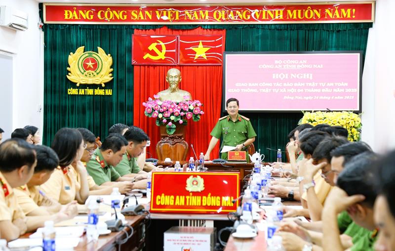 (CTT-Đồng Nai) - Chiều 24/4, Công an tỉnh đã tổ chức Hội nghị giao ban công tác bảo đảm trật tự an toàn giao thông, trật tự xã hội 4 tháng đầu năm 2025. Đồng chí Đại tá Trần Anh Sơn, Phó Giám đốc Công an tỉnh chủ trì hội nghị.