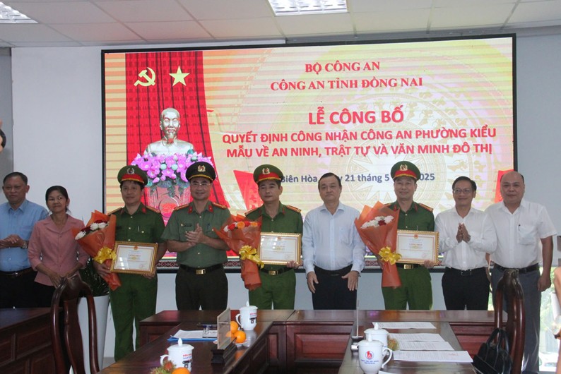 (CTT-Đồng Nai) - Sáng ngày 21-5, Công an tỉnh đã tổ chức buổi lễ trao quyết định chính thức công nhận 4 phường là công an phường kiểu mẫu về an ninh, trật tự (ANTT) và văn minh đô thị trong năm 2024. Các phường được ghi nhận thành tích xuất sắc này là: Tân Hiệp, Trung Dũng, Tân Hòa (TP. Biên Hòa) và Suối Tre (TP. Long Khánh).