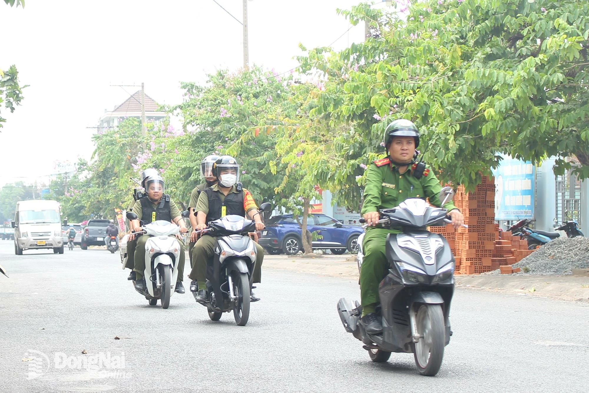Công an phường Hố Nai tổ chức tuần tra khép kín địa bàn. Ảnh: Phạm Huệ