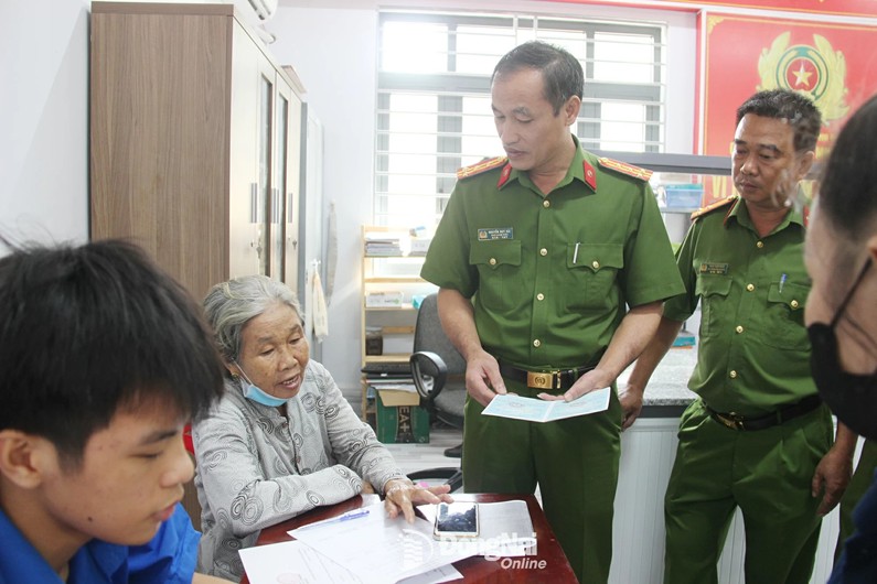 Một người dân mang sổ hộ khẩu (đã không được sử dụng) để làm thủ tục, Đại tá Nguyễn Huy Hải yêu cầu cán bộ Công an phường hỗ trợ, hướng dẫn để người dân giải quyết thủ tục theo quy định. Ảnh: Trần Danh