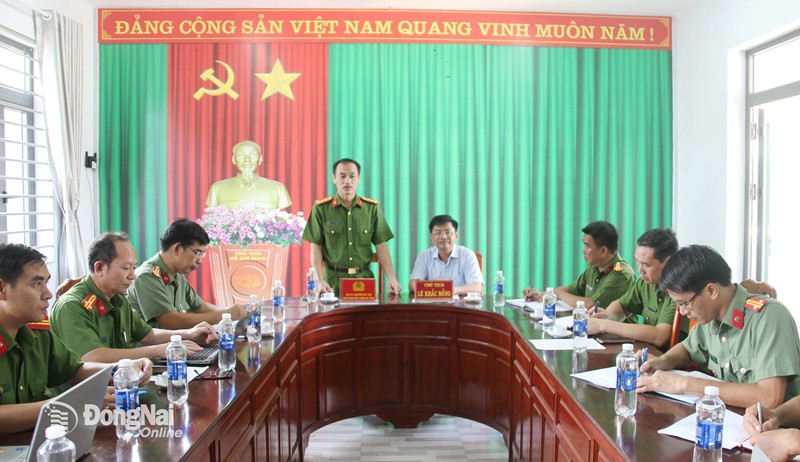 Đại tá Nguyễn Huy Hải, Phó Giám đốc Công an tỉnh chủ trì buổi làm việc với Công an phường Minh Hưng. Ảnh: Trần Danh
