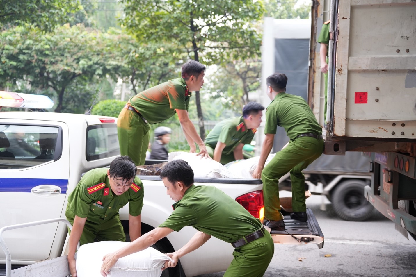 Tại trụ sở Phòng Cảnh sát Quản lý hành chính về trật tự xã hội, ngay trong chiều 13/10, đông đảo cán bộ, chiến sĩ của đơn vị đã có mặt để phân loại và vận chuyển hàng hoá, rau củ quả, nhu yếu phẩm tập kết ra xe. Hàng hoá được chia thành các khu vực riêng biệt với đa dạng sản phẩm được người dân từ khắp nơi trên địa bàn tỉnh gửi đến với mong muốn được chia sẻ, thể hiện tình cảm và trách nhiệm cộng đồng trong những lúc khó khăn, hoạn nạn. Theo đó, ước tính khoảng 30 tấn hàng hoá cứu trợ sẽ được vận chuyển và bàn giao đến tỉnh Thái Nguyên và các tỉnh lân cận, nơi có hàng ngàn hộ dân đang bị cô lập do mưa lũ.