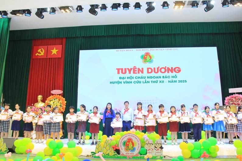 Tại đại hội đã trao khen thưởng cho nhiều tập thể, cá nhân đạt thành tích xuất sắc trong công tác Đội và phong trào thiếu nhi; phong trào Thiếu nhi Vĩnh Cửu thực hiện tốt 5 điều Bác Hồ dạy giai đoạn 2020-2025. Đặc biệt, Huyện đoàn đã tuyên dương 150 đại biểu Cháu ngoan Bác Hồ tiêu biểu.
