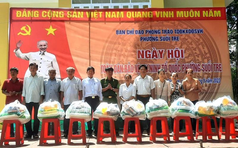 Công an phường Suối Tre trao tặng quà đến quần chúng nhân dân, tổ trưởng nhân dân trên địa bàn