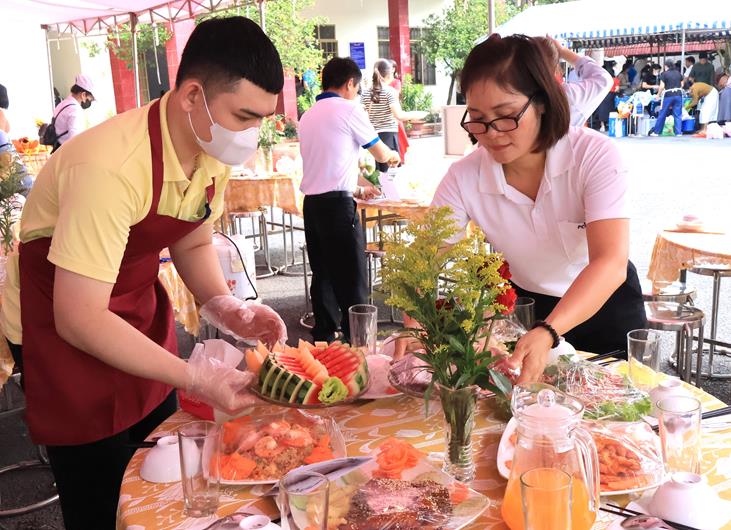 Các đơn vị tham gia Hội thi nấu ăn có sự chuẩn bị chu đáo, trang trí món ăn đẹp mắt, hấp dẫn