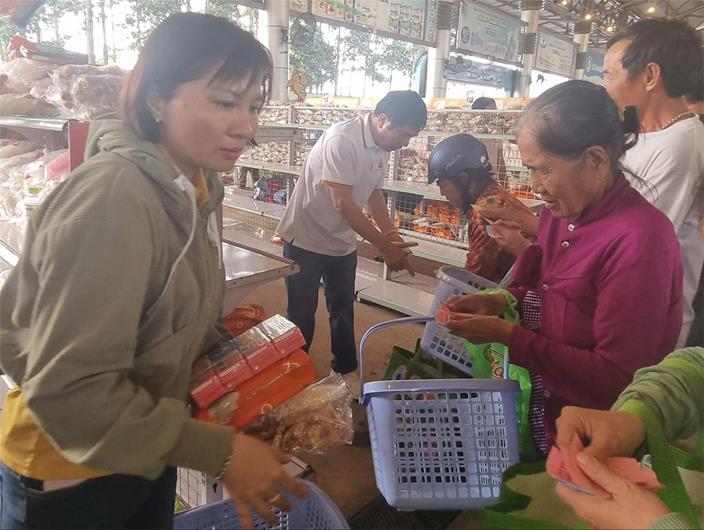 Tại đây, trên 800 gia đình chính sách, hộ nghèo, người lao động có hoàn cảnh khó khăn được phát phiếu mua hàng 0 đồng trị 1,2 triệu đồng với trên 15 sản phẩm thiết yếu gồm: gạo, dầu ăn, bánh mứt tết, sữa và gối, nệm… Số nhu yếu phẩm này do các mạnh thường quân tài trợ. Nhiều người dân nghèo, người lao động đều phấn khởi khi nhận phần quà ý nghĩa trong dịp tết đến, xuân về.