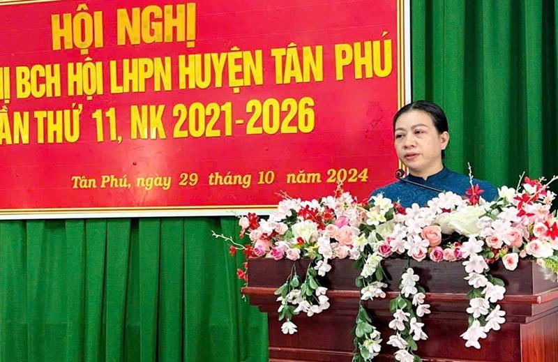 Phát biểu tại hội nghị, bà Lê Thị Thái, Chủ tịch Hội LHPN tỉnh chúc mừng tân Chủ tịch Hội LHPN huyện Tân Phú. Chủ tịch Hội LHPN tỉnh đề nghị, tân Chủ tịch Hội LHPN huyện Tân Phú Lưu Thị Tuyết Nhung sẽ đoàn kết cùng với Ban chấp hành, Ban Thường vụ Hội LHPN huyện nâng cao chất lượng, hiệu quả công tác Hội và phong trào phụ nữ của huyện.