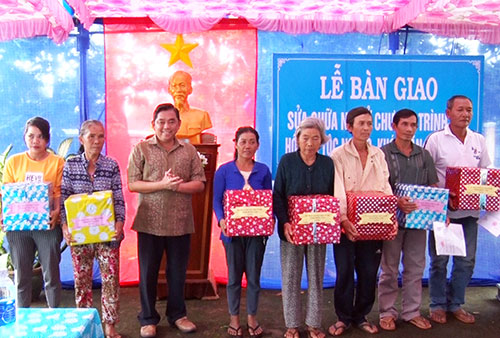 Dịp này, Ủy ban MTTQ Việt Nam tỉnh và các mạnh thường quân trao tặng 20 nồi cơm điện, 20 phần quà gồm gạo và nhu yếu phẩm cho các hộ được sửa nhà.