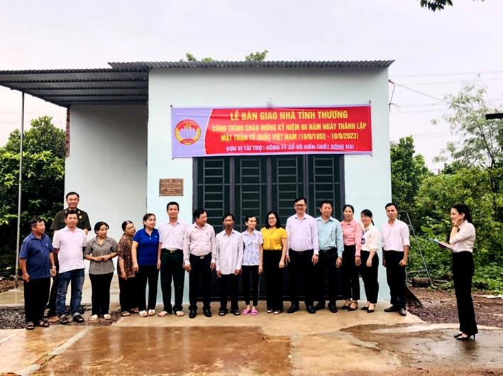 Căn nhà có diện tích 56,8m2, tường xây, mái lợp tôn, nền lót gạch bông. Tổng kinh phí xây dựng 100 triệu đồng; trong đó, Ủy ban MTTQ Việt Nam TP.Long Khánh vận động Công ty Xổ số kiến thiết Đồng Nai hỗ trợ 80 triệu đồng, số còn lại người thân và gia đình góp thêm để xây dựng.
