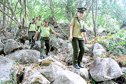 Lực lượng kiểm lâm tuần tra tại khu vực suối Lạnh của núi Chứa Chan.