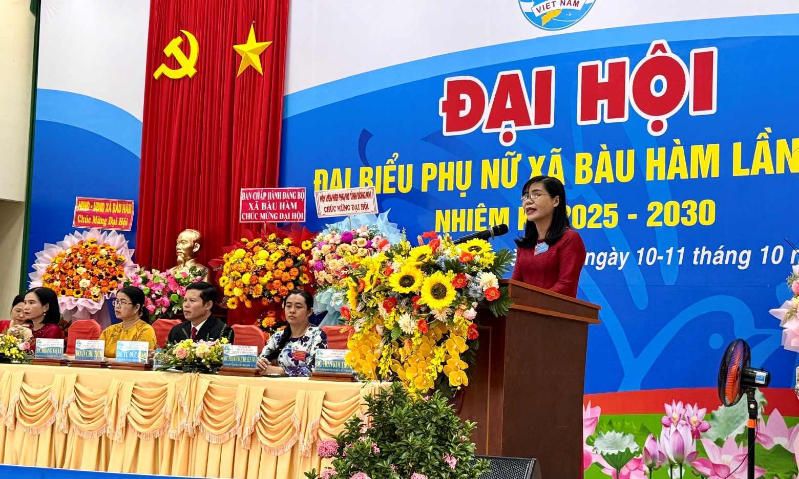 Theo đó xã Bàu Hàm được thành lập trên cơ sở sáp nhập từ 4 xã: Bàu Hàm, Sông Thao, Cây Gáo và Thanh Bình, với tổng cộng gần 20.000 phụ nữ từ 18 tuổi trở lên, trong đó có trên 9.000 phụ nữ là hôi viên. Nhiệm kỳ vừa qua, Hội phụ nữ xã đã đẩy mạnh công tác tuyên truyền, vận động hội viên phụ nữ tích cực tham gia các chương trình công tác Hội. Thực hiện đạt 5/9 chỉ tiêu, vượt 4 chỉ tiêu so với Nghị quyết đề ra. Đã tổ chức 407 cuộc tuyên truyền, thu hút trên 36 nghìn lượt phụ nữ tham gia xây dựng phụ nữ Việt Nam thời đại mới. Hàng năm có 90% phụ nữ đăng ký tham gia thực hiện các phong trào “Xây dựng gia đình 5 không-3 sạch”; 100% cán bộ hội được bồi dưỡng nghiêp vụ nâng cao kiến thức và 100% Chi hội đều có nhóm zalo để triển khai nhiệm vụ,… Trong nhiệm kỳ Hội đã nhận đỡ đầu 22 trẻ, hỗ trợ hàng tháng từ 300.000 đến 500.000 đồng; ủng hộ phụ nữ vùng biên cương 30 triệu; trao 90 suất học bổng và tặng 20 xe đạp, trị giá 75 triệu đồng và tặng gần 2.000 phần quà tết, quà cho các hộ khó khăn với tổng trị giá gần 350 triệu đồng. Kịp thời tham gia hòa giải 20 trường hợp; phát triển thêm 177 hội viên mới và giới thiệu 4 hội viên ưu tú đề xem xét kết nạp Đảng.