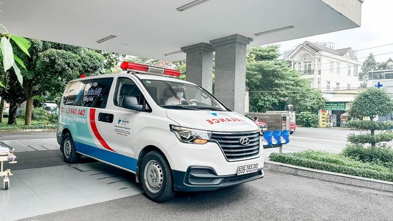 Xe cấp cứu ngoại viện của Bệnh viện Quốc tế Hoàn Mỹ Đồng Nai