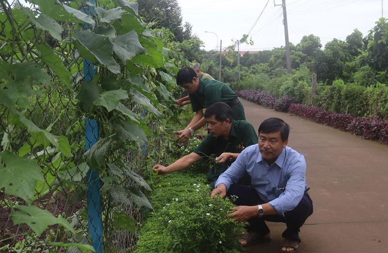 Ông Nguyễn Văn Truyền cùng các cựu chiến binh làm sạch tuyến đường sáng xanh, sạch, đẹp do cựu chiến binh quản lý