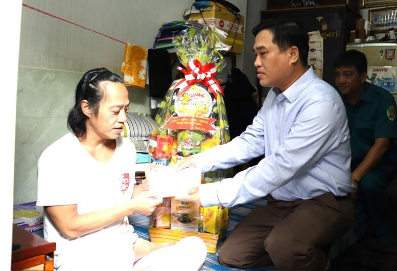 Bí thư Thành ủy Biên Hòa tặng quà thương binh Lê Văn Thiên, ngụ khu phố 4, phường Tân Phong